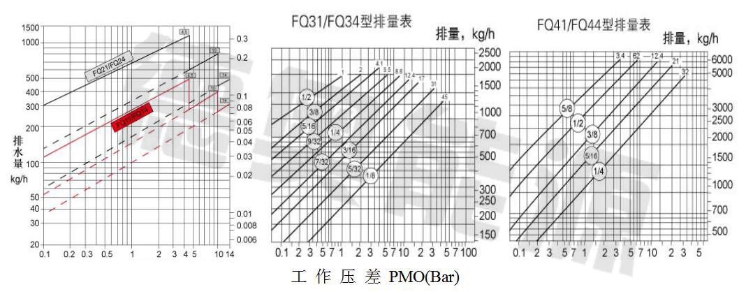 8、選型時(shí)請(qǐng)?zhí)峁┕ぷ鲏毫?、工作壓差、凝結(jié)水量、工作溫度、連接方式及標(biāo)準(zhǔn);根據(jù)用汽設(shè)備正常工作時(shí)可能產(chǎn)生的凝結(jié)水量,乘以修正系數(shù)(一般2-3)得出排水量,然后對(duì)照排水量和壓差進(jìn)行選擇。